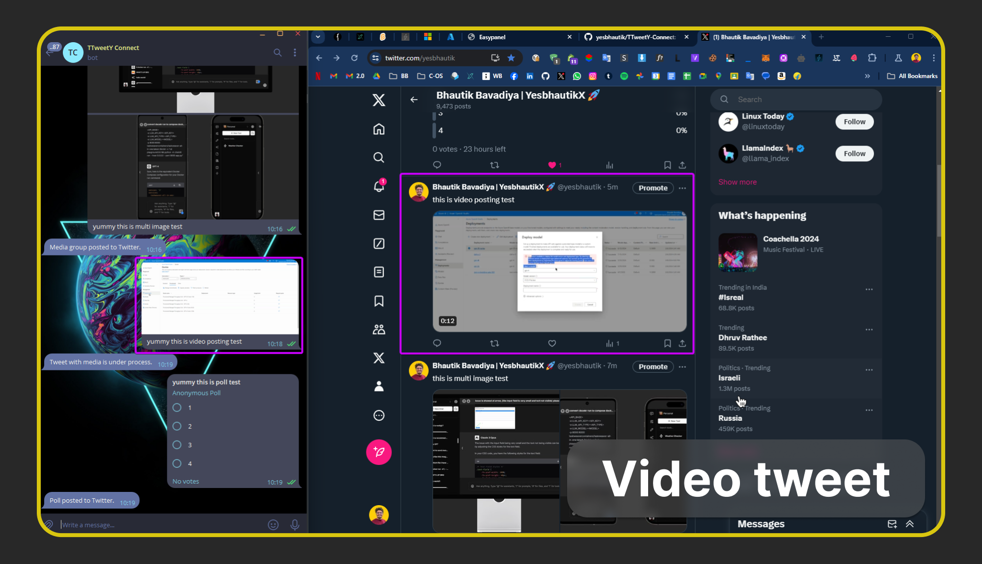 - Cross-Platform Poll Integration: Extend your Telegram polls to Twitter by automatically reposting them, ensuring consistent engagement across platforms and maximizing audience participation.