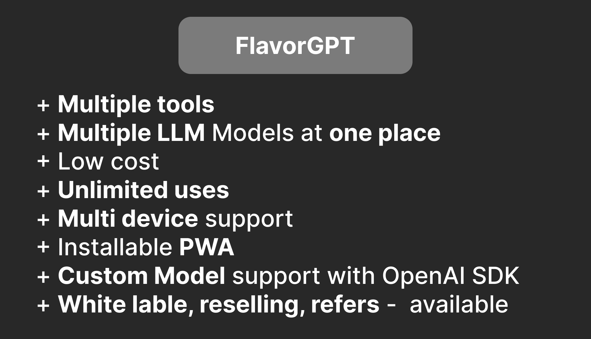 Whether for personal use or business, with options for White Labelling and reselling, FlavorGPT is set to revolutionize how you interact with AI. Get ready to elevate your tech game!